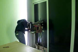 武淑清和社会敏感性研究所的影像装置《指尖的性爱》把箭厂空间朴素的店面压缩为一幅私密的画面。除了一个极不易被察觉的“开口”外整个玻璃门被遮蔽起来,《指尖的性爱》是一次暗示着私密偷窥行为的独立观看体验。画面内容是武淑清用双手表演她每日生活中必要动作的视频。“手”对一位生产线上的工人至关重要,而对于武淑清,手也涉及到丰富的情感生活。她的格言与见解在简单、重复的手势中形成层次,将这些平凡的动作转化为一组组编舞。作品的呈现方式有意使观众接近武淑清的个人轨迹,关注生活中那些易被忽略的细节并分享她在平凡中感到的愉悦。